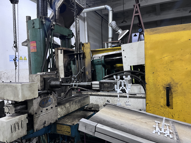 Друга машина за леење, со зеленото тело и трепкачките показни светла, ги распределува обликуваните сурови делови во кутиите за прием. Калапите што штотуку се отворија веднаш се враќаат во работа според претходно поставената програма и во нив се вбризгуваат нови материјали за да чекаат да се изладат и да се обликуваат. и целосно опуштете се за да го прославиме нашиот сопствен фестивал. Ова е рекорд на едно обично утро во работилницата за леење легури од цинк во Ханџиа на 15 јануари 2026 година. Калапите што ќе се користат денес ќе произведат две компоненти за отворач за вино и сурови делови за нож за лупење, што е често користен производ во кујната. и однапред испланирани. Секоја вибрација на опремата, звукот на материјалите што се вбризгуваат во калапи и чекорите на работниците придонесуваат да нè донесе чекор поблиску до завршување на нарачките и враќање дома.